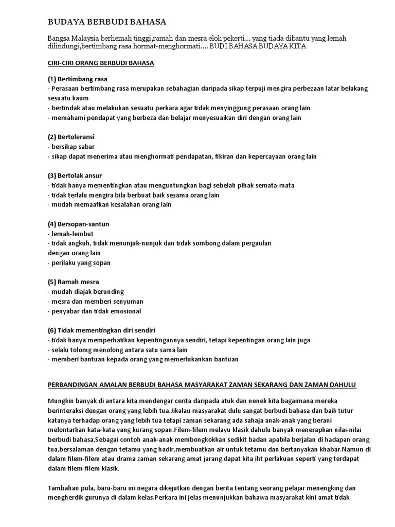 Kepentingan Amalan Berbudi Bahasa Dalam Kalangan Masyarakat Pdf